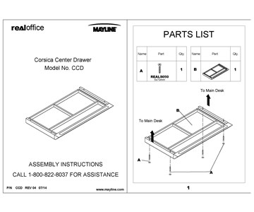 Add swatch Corsica® Series Center Drawer Assembly Instructions - CCD