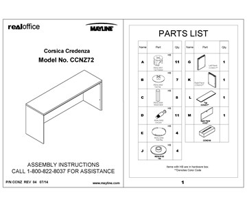 Corsica® Series Credenza Assembly Instructions - CCNZ72