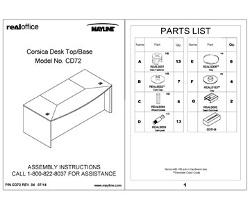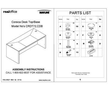 Corsica® Series Straight Front Desk Assembly Instructions - CDS72