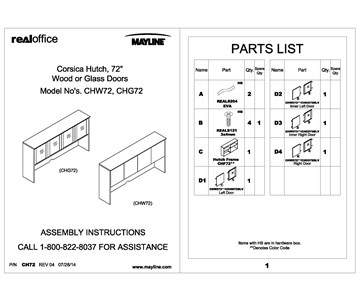 Corsica® Series Hutch Assembly Instructions - CHW72_CHG72