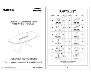 Add swatch Corsica® Conference Table, 6’ W Assembly Instructions - CTC96