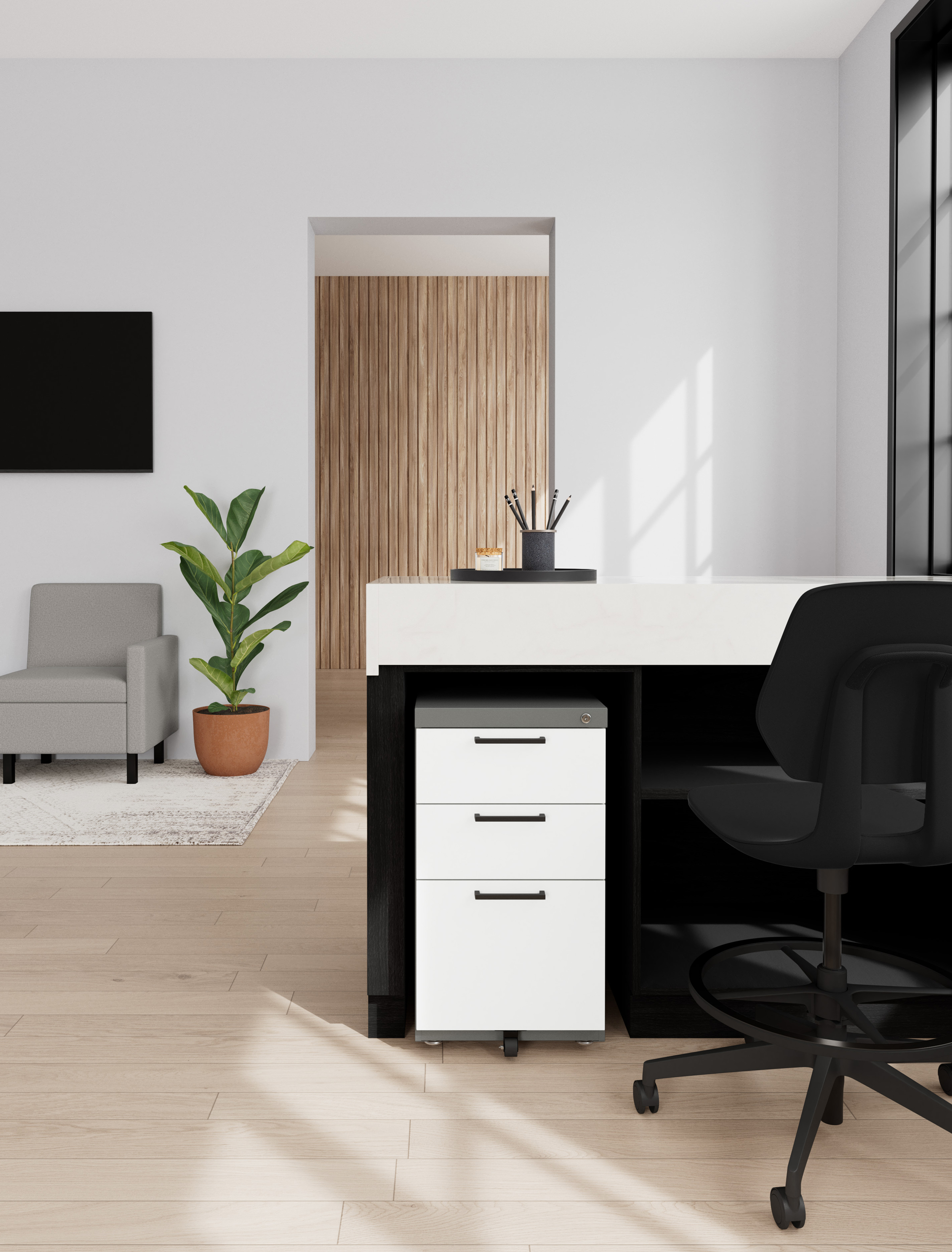 - Complements SAFCO TechWorks Benching system, Spark and Jurni Tables