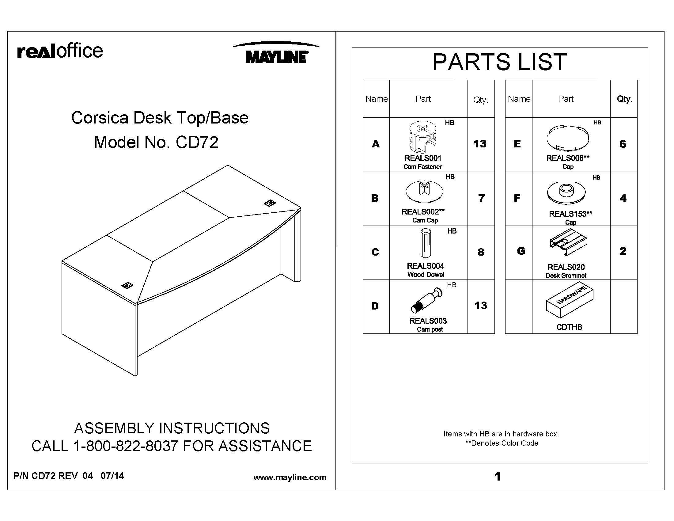 Corsica® Series Bow Front Desk Assembly Instructions - CD72