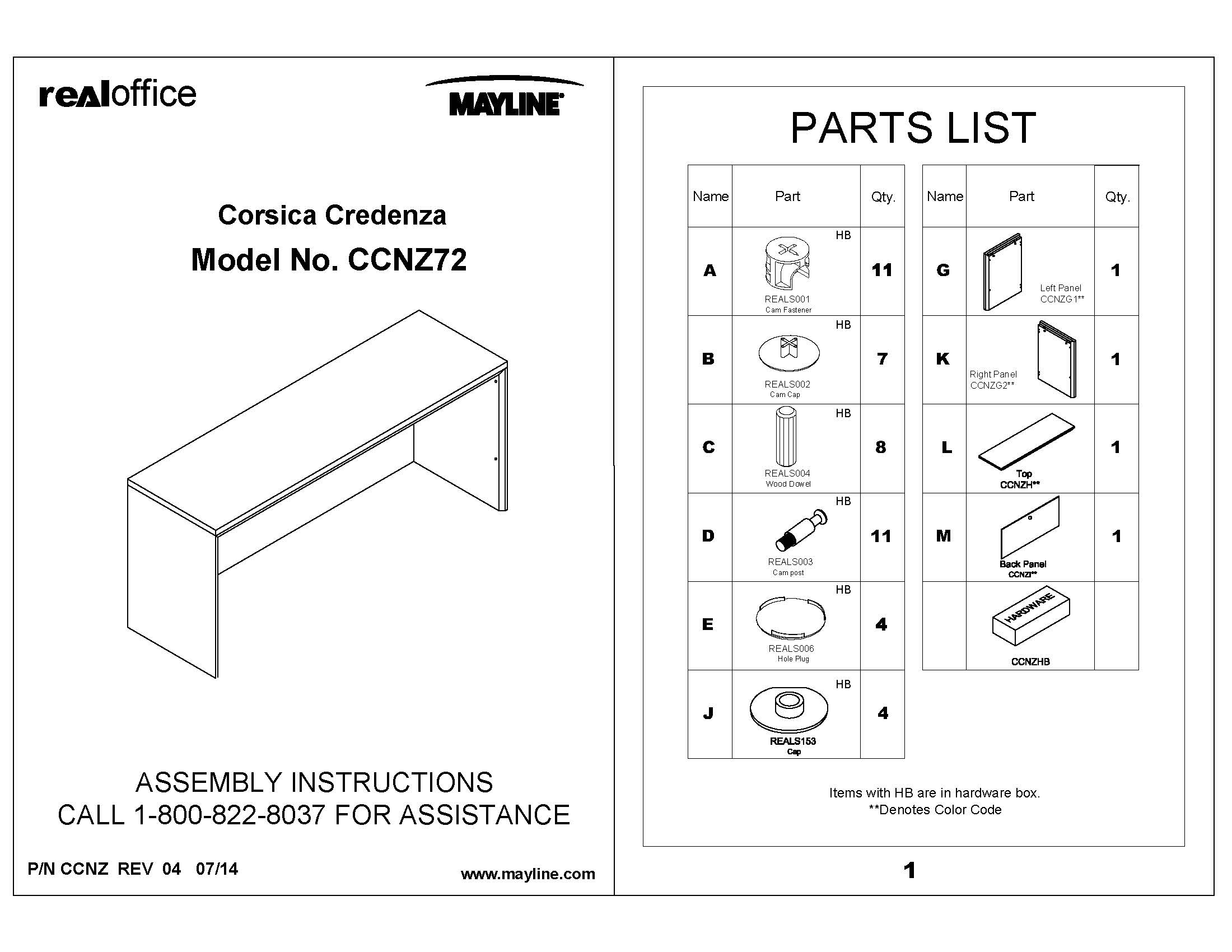 Corsica® Series Credenza Assembly Instructions - CCNZ72