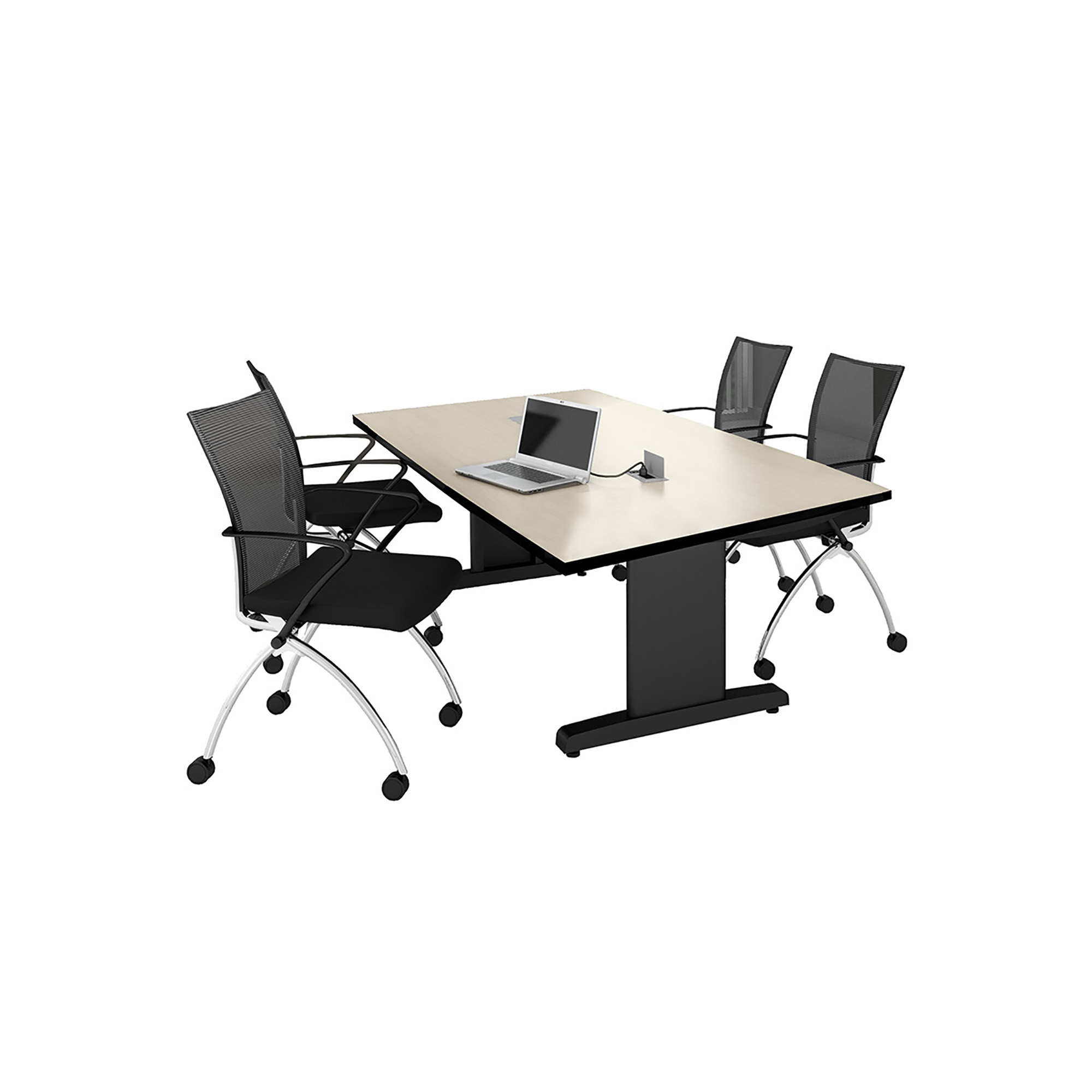 CSII Conference Table legs are constructed of 14 gauge steel and available in Mayline's standard black finish. Tops are constructed of 1 1/8" thick high pressure laminate with t-mold edge. Tables can be ordered with black grommets. Slimline legs are 7"W and Premier legs are 13"W. Both have integrated cable channels within table legs. All tables are standard with two legs, except for 120" with three legs.
