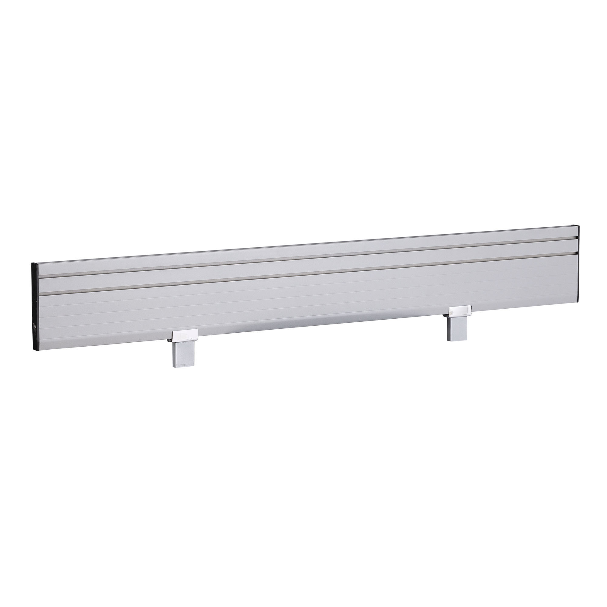Accessorize EVEN Workstations in style. Helps to add additional privacy between workstations. Comes with Black end caps and two mounting brackets. Silver powder coated aluminum. Pairs with accessories: Folder/Paper Sorter Tray (LDFH1), Phone/Tablet Support Tray (LDFH2) and Pencil Holder (LDPHS). Available in three sizes (48, 60 and 72” wide).