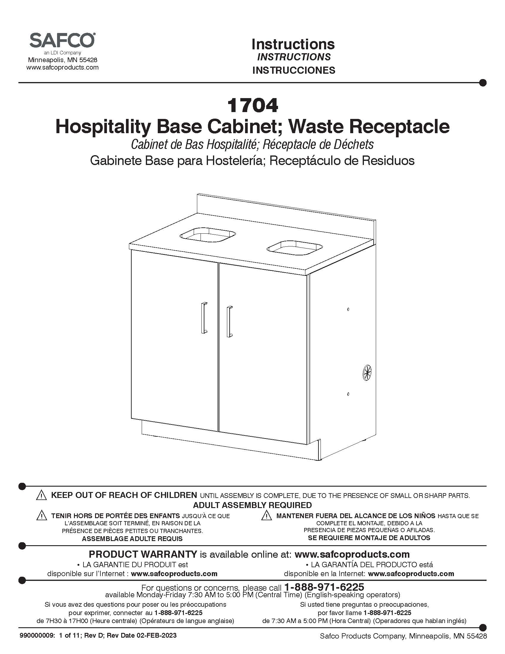 Hospitality Base Cabinet; Waste Receptacle Assembly Instruction