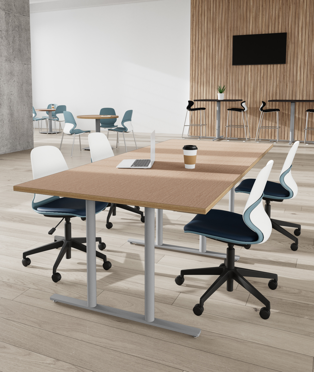 - Available in 15 laminate top colors and 10 powder coat painted leg and base colors.