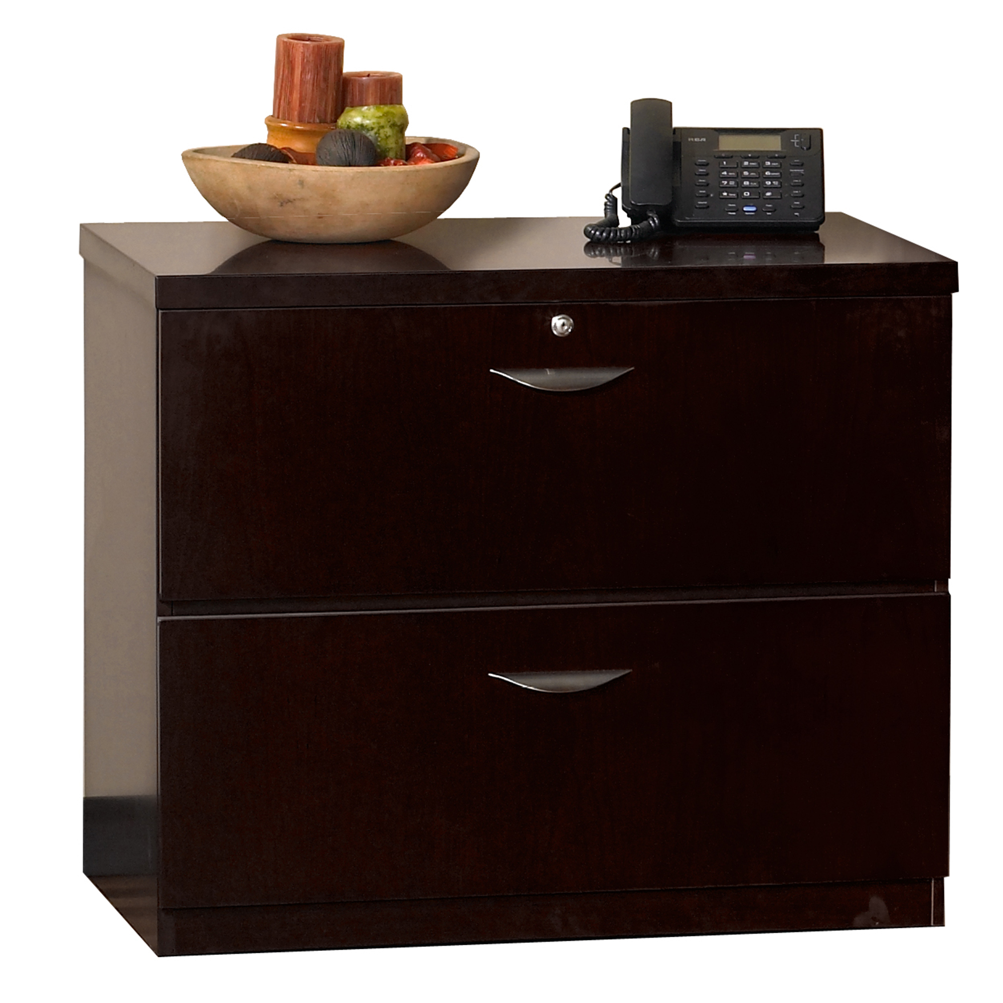 The Mira Series Freestanding Lateral File-2 Drawer has a Gang-lock that features removable core enabling keyed-alike suites. The drawers operate smoothly using full-extension ball-bearing suspensions. It supports a wardrobe unit and accommodates letter and legal size hanging file folders. It includes a counter-weight for stability when in use.